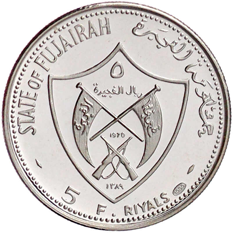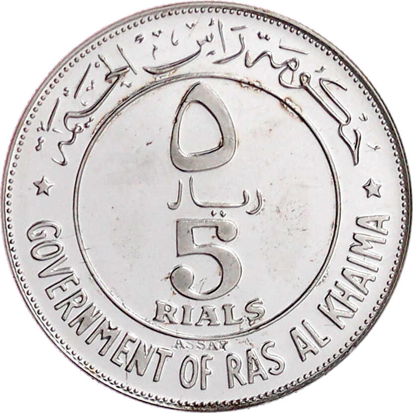 Polierte ...more 5 Rials Silber 1969. Gekreuzte Flaggen. Auflage nur 1500 Ex.