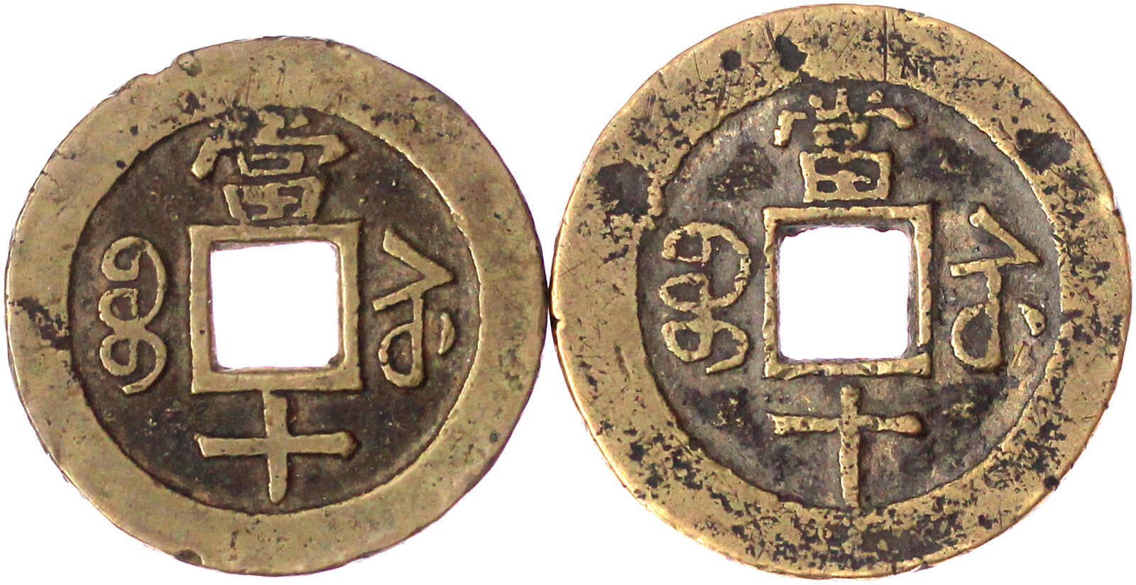 2 Stück: 10 Cash Bronze Xian Feng zhong bao/Boo su (Mzst. Suzhou ...more